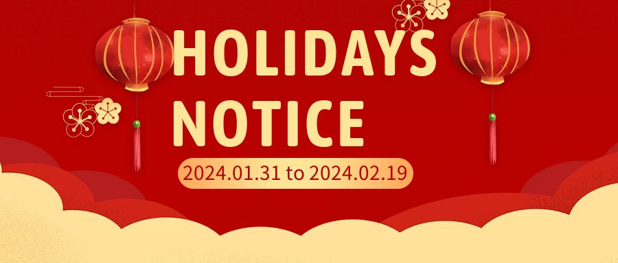 Please kindly be advised that our company will be closed from 31 January 2024 to 19 February 2024 in observance of the Chinese traditional festival, Spring Festival.